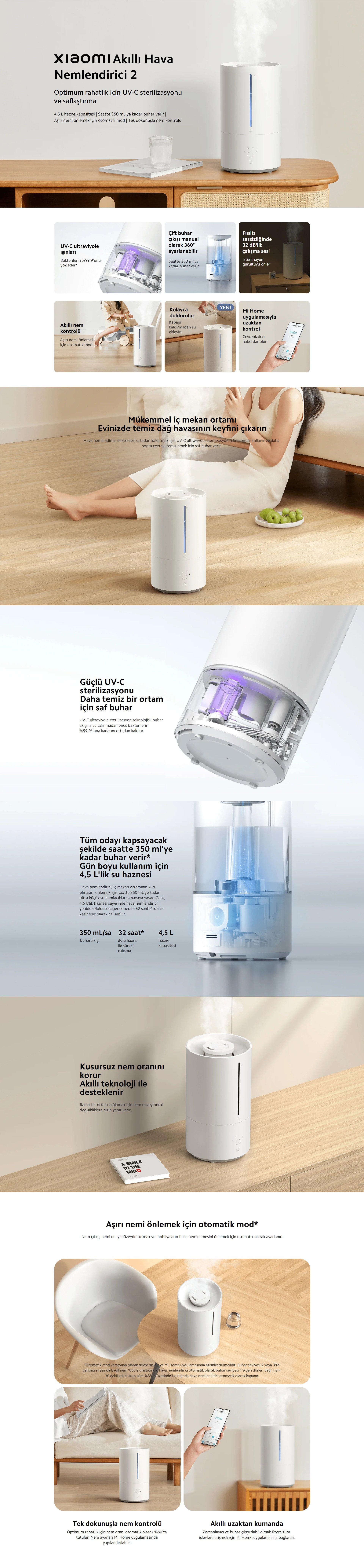 Xiaomi Smart Humidifier 2 Buhar Makinesi Beyaz (Xiaomi Türkiye Garantili)